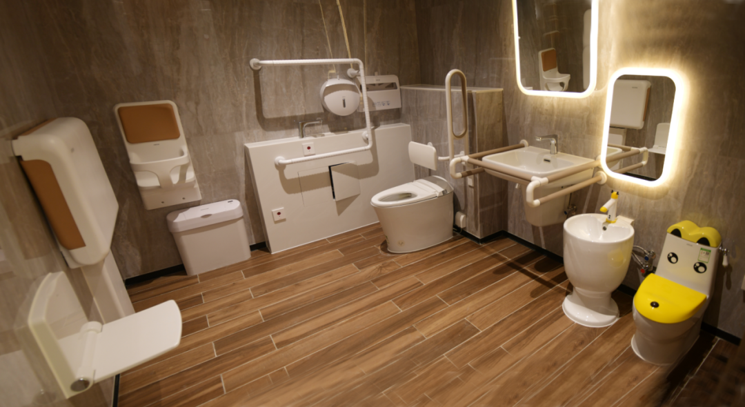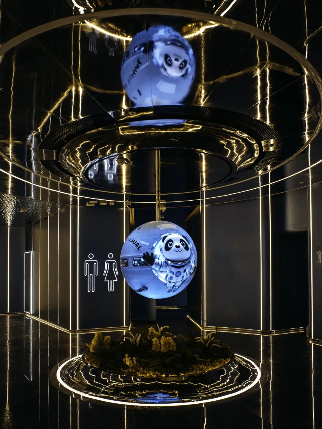 西侧的旗舰卫生间却换了另一番光景——星海元素漫过墙面,航空展览的模型在角落闪着微光,连地砖的纹路都像铺着银河。这里藏着一段关于“太空玫瑰”的浪漫故事:2002年,一批玫瑰种子跟着神舟四号飞船飞向太空,经专家团队千百个日夜培育,终于在2012年七夕,以中国航天文创“银河礼物”的身份绽放。如今,这份“太空浪漫”成了卫生间的设计魂,每一处光影都在诉说:当花朵能在太空绽放,既是科技进步的勋章,更是人类迈向星海的脚步——而这份敢闯敢试的创新劲儿,恰是大湾区最鲜明的气质。